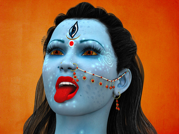 6.) then their is shamshan kali - she is not a warrior and is seen as a great liberator of souls , she is characteristic in her really long tongue but nether wears a garland of human heads nor is a warrior.. she is worshiped to obtain sidhi (means potential) (we have temples of her here in india)
