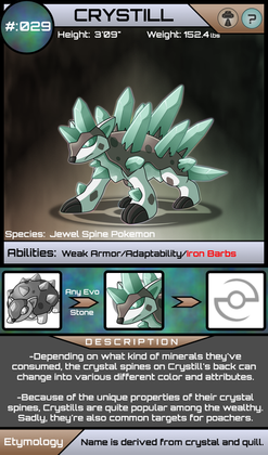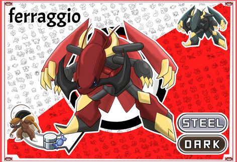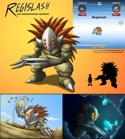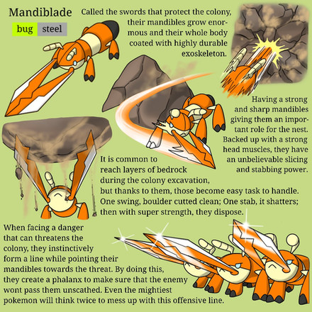 Unusually for one of my creations, Excaslash's height strikes an average between Excadrill and Sandslash, But the additional metal gives it the total weight of both samples. The specialisation of the metal armor to easily cut through soil and rock renders the subject impervious to ground attacks, a matter I have had contention with in the past, concerning pure monster strains.