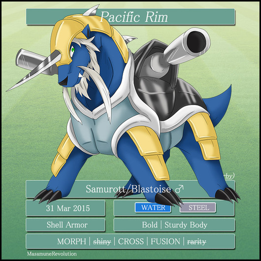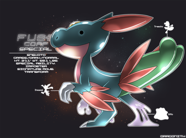 Abridged log entry: The subject has been observed to move underwater with the same agility, grace and speed as an animal of similar build would move on land. This of course means that in a terrestrial environment the subject's battle parameters surpass that of most Pokémon. Its admittedly unusual body plan resembles a Cobalion more than its actual components, and it has the personality to match.