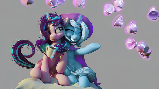 It'd be cute if Bon Bon also had a balloon and it was wrapped around Lyra's, connecting them together. But that's my idea, not yours, which is awesome