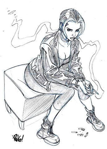 I love your pencils , so clean a cool outline, the expresion on the girl face its naughty