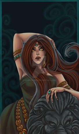 Wow, this is exactly how I see Circe : the pose, the lion, the cup, the smoke and the eyes. But Circe is red, it's Medea who is brown ^^