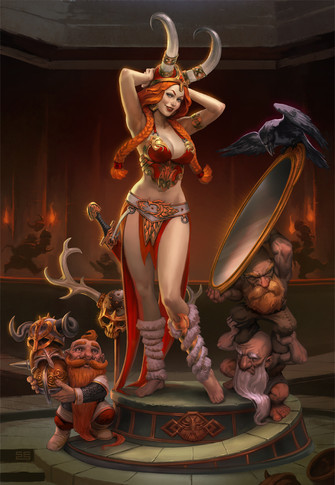 I draw horned characters a lot and I've always found it difficult to do the forshortening correctly when their heads are turned 3/4 like this. The far horn seems to be a little off here if I'm not mistaken.