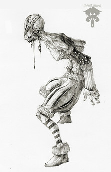 Creepy and awesome. I love the teacup hat and the mismatched shoes!