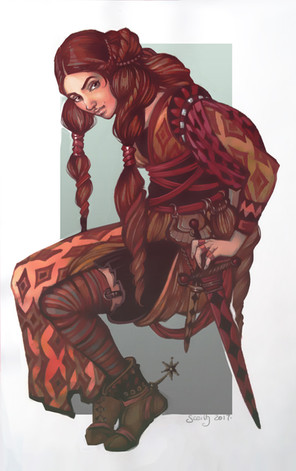 Awesome!Β I love the style and texture.Β Did you base her armor off of any particular examples?Β Great details.Β