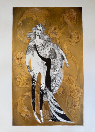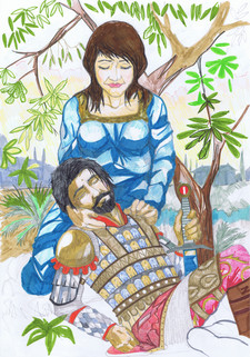 Great storytelling piece in an ancient style. Still, it's modern as well, according to the look in her eyes.
