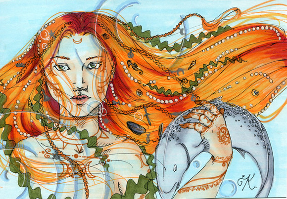 My favorite god versus the vicious fishes!Β *grins*Β So very cute!