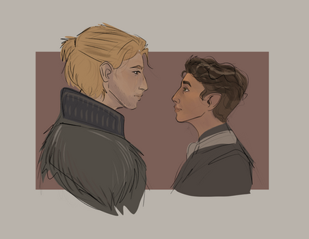 Are they in love? They totally look in love. If not, the darker dude totally has it for the red-head.