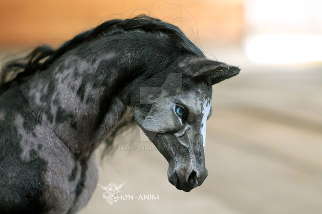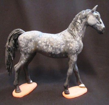 Osiris is a OOAK (one of a kind) handmade horse sculpture. He was made from polymer clay over a wire and foil skeleton, and has a mohair mane and tail.Osiris is one of the smallest sculptures I've done, he's only 3.5 inches from chest to bum and just under 5 inches tall. He is based off a real horse, a dapple grey arabian.