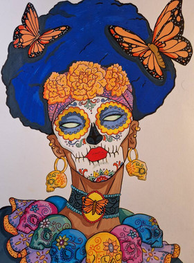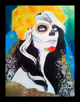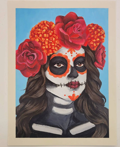 #artist #braids #day #dead #dia #flowers #frida #gold #ink #kahlo #los #mexican #muertos #portrait #roses #skull #sugar #sugarskull #watercolor #woman #de