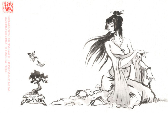 Their portraits were first drawn in pencil (HB) on Canson 9x12 cold press 140 lb watercolor paper, inked with Sakura permanent pens (size 1, 3, and the occasional 8). Sakura brand watercolors, as well as some Holbien and other random ones were used, even straight from the tube. Royal brand brushes and generic small sumi-e brushes were used as well.