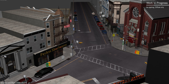 More props for my Newark street scene in CryEngine2.Xoliuls viewportshader for max used for screens.