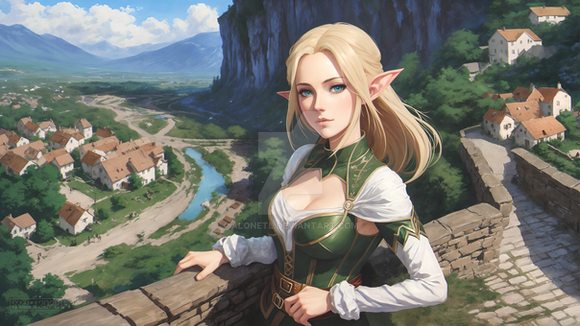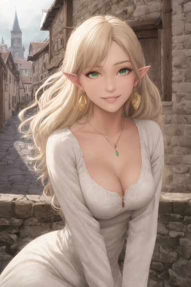 #dungeonsanddragons #elf #elfgirl #fantasy #female #girl #medievalcity #smiling #aiart #aiartwork