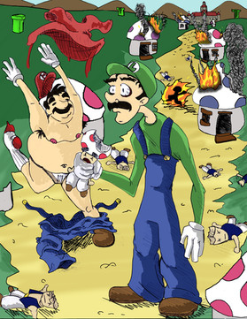 I was always curious why everything in the mario universe from the boxes to the plant life has eyes, even the mushrooms and fireflowers that mario consumes have these gigantic eyes.I find that it is easier to draw the comic first on paper, then color it in photoshop.