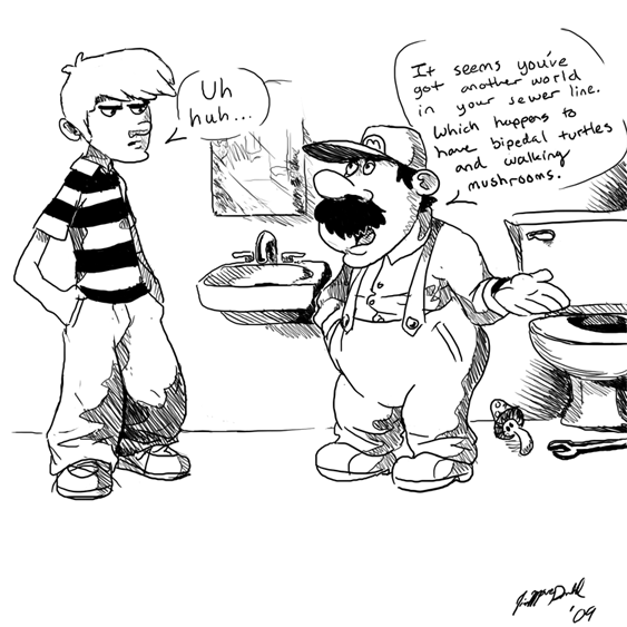 XD! Very clever having the comic shown in the mirror, nice work. I love Mario's expression. ^^