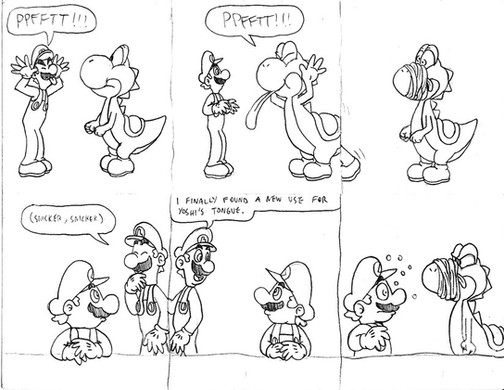 Well I have felt that my gag panels are pretty random. With the exception the Dr. I have no recurring cast to back up on. I just feel I need to take it to the next step and add recurring characters and a purpose to my comics. How can I achive this? I will start doing multi panel comics. It was never my intention to be the next Far Side, I just had funny pictures in my head and I thought the fast way to get them out was with gag panels. Don’t get me wrong. I will still be doing gag panels, there are many jokes that are perfect with a single panel. I’m finding gag panels to feel a bit stuffy.I have plenty of room to draw scenes but not enough panels to tell a interesting story.The comic will now be divided into three sections. First is the gag panels as usual, Second a experiment with simple characters that I will use no dialog but the visuals to deliver the punchline. The Third is the cast shown and makes fun of a genre dear to my heart called “high fantasy” which is riddled with so many cliches. If high fantasy is the cheese, then cliches are it’s many many holes. I like to make fun of silly things (such as myself) I though it would be interesting to have a cast of the cliche races of fantasy- humans, elves, dwarves, dragonmen, and gnomes in a working class setting but the make them not fit into the archetypes. Most fantasy parodies take a ancient time and modernizing it, I’m doing the polar opposite. I guest it fits more into a ‘urban fantasy’, something that is also done awkwardly.Will it work? I am not sure. If it’s fails I will try something else. I have been working this cast for months,balancing it (well at least trying too) and stretching out my brain on the art end. I also need to calm down a not be so hasty with drawing my comics. I leave sketch lines and stuff, but I want to be more professional in future comics I create. I’m also ditching coloring the panels in monochrome. It will either be ink or full color.