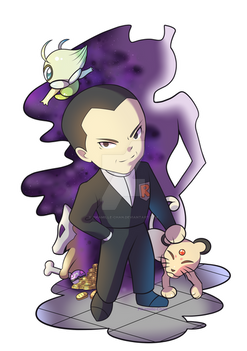 Pokemon Trainersona for bug-scuffle :^}Design notes: Black hoodie with dawn stone emblem. Black undersuit - turtleneck/gloves/stockings. Ripped jeans. Steel boots, shoulder plates, belt, and crown with dawn stone shard.