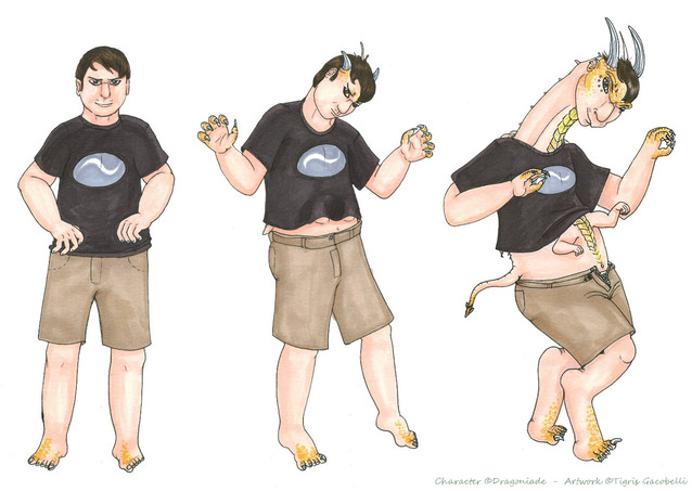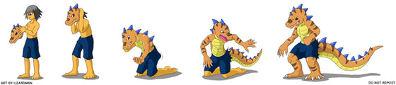 Yet another poor bloke being transformed into a lizard thingy, all smooth like ^^. I did this one because the first lizseq has some to be desired in terms of skill. If you must know this person here read the wrong book one day and ended up as a morphic lizard by the name of Sallah.Related content