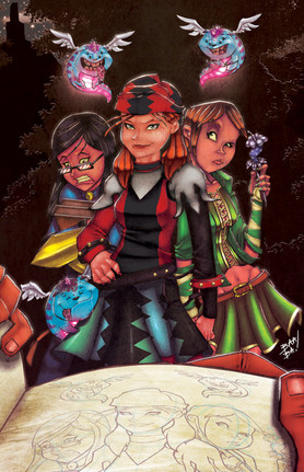 It makes me wonder if there is a school for young mad scientists. The world may never know. LOL! Seriously, great image! The two young witches arriving on broomsticks was a nice touch!