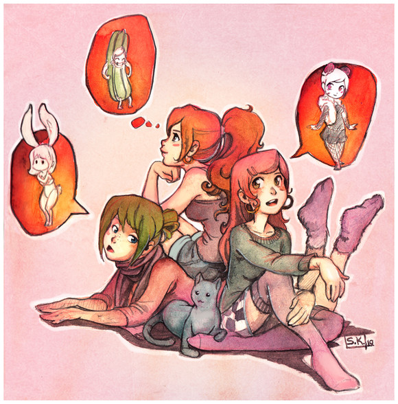 OMW! I LOVE THIS!!!!! the clean anime style charys look so amazing in their painted bg!!!! they fit together so perfectly but since they are different the charys aren't lost in the beautiful detail of the bg!