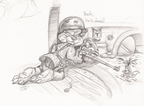 Been working on an art book lately, undecided about going back to school. Anyway, here's a little something I drew one stormy winter day.Anyone seen/heard of Watership Down? It's an animated film based off a novel that pretty much explains why rabbits are so skittish, paranoid and why almost every animal wants a bite of their lean hare asses. Bunny better be cunning 'cose he gonna die.