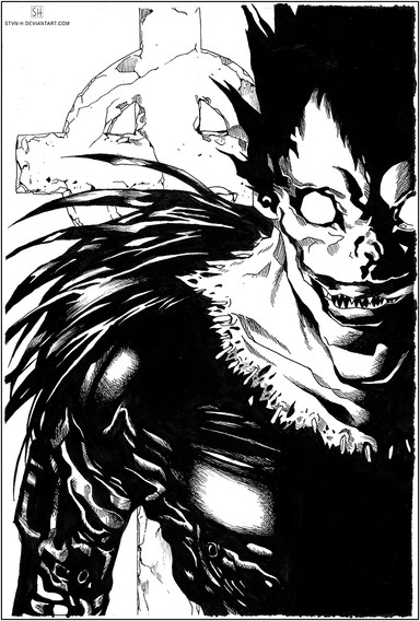 Ryuk is sooooo cooool! Ich liebe diesen Shinigami so dermaßen! <3 *grinsen* Echt super schön gezeichnet! schwarz-weiß is sowieso cool! ;3