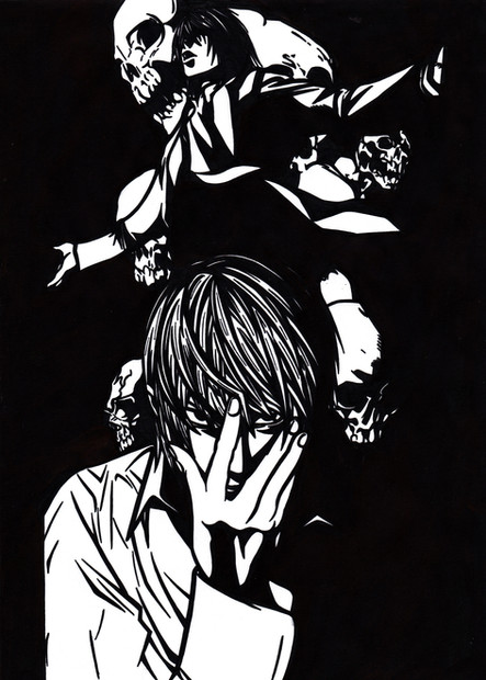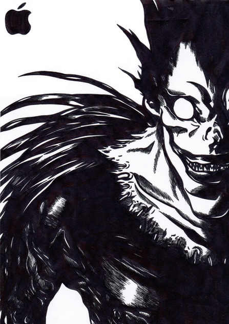 #anime #apples #black #death #drawing #god #ink #japan #kapoor #light #manga #note #obata #police #raito #ryuk #shading #shinigami #takeshi #yagami #lawliet #shonali #l
