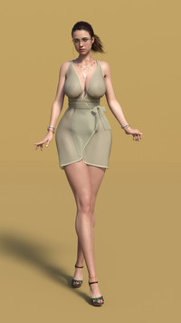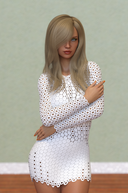 #3d #daz #brunette #busty #whitedress #posingsexy