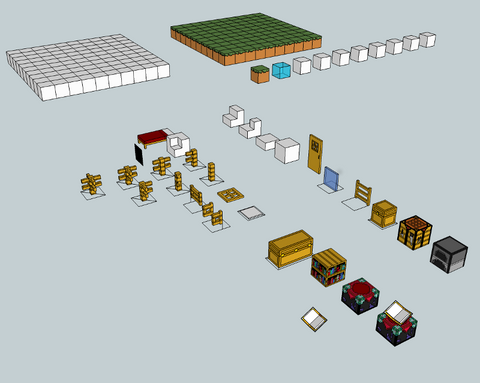1) The blocks are 50cm x 50cm x 50cm. That means there is a size ratio of 1 Minecraft Pixel = 1.5625cm in C4D. This made designing certain objects difficult bu it makes placing them very easy.