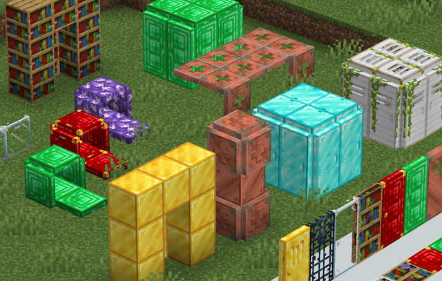 40 more blocks and objects. I finally upgraded from 1.8.9 to 1.10.2 so I could get the newest textures like the Bone Block, Chorus Plant, Magma, and Command Blocks. I also went ahead and made the Debug and Structure Blocks.I cut holes in the Jungle and Acacia Doors, and I moved all of the door rotation points to the edges. You'll have to offset them my 25cm from the block they're on top of, but then you'll be able to rotate them very easily.