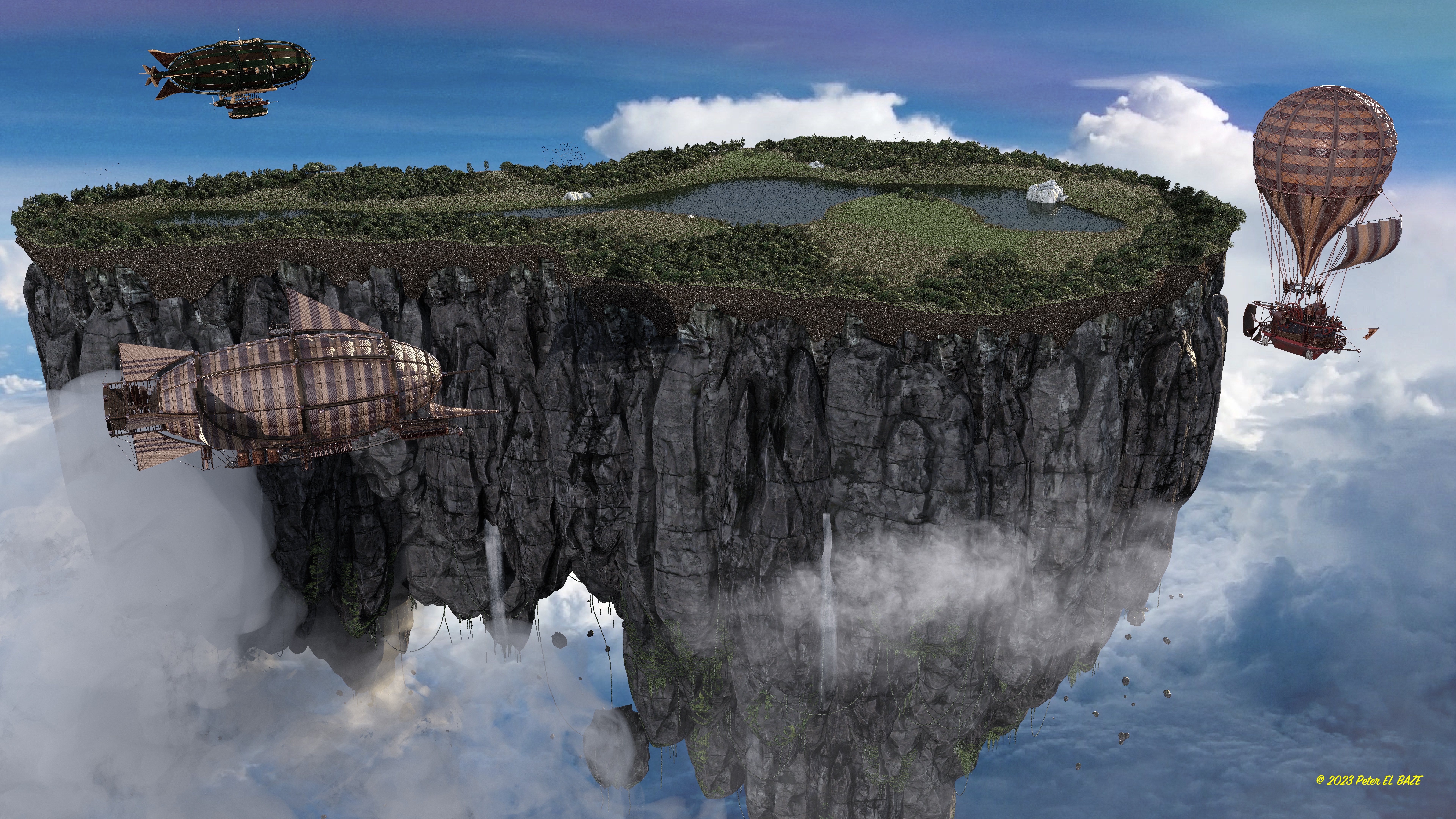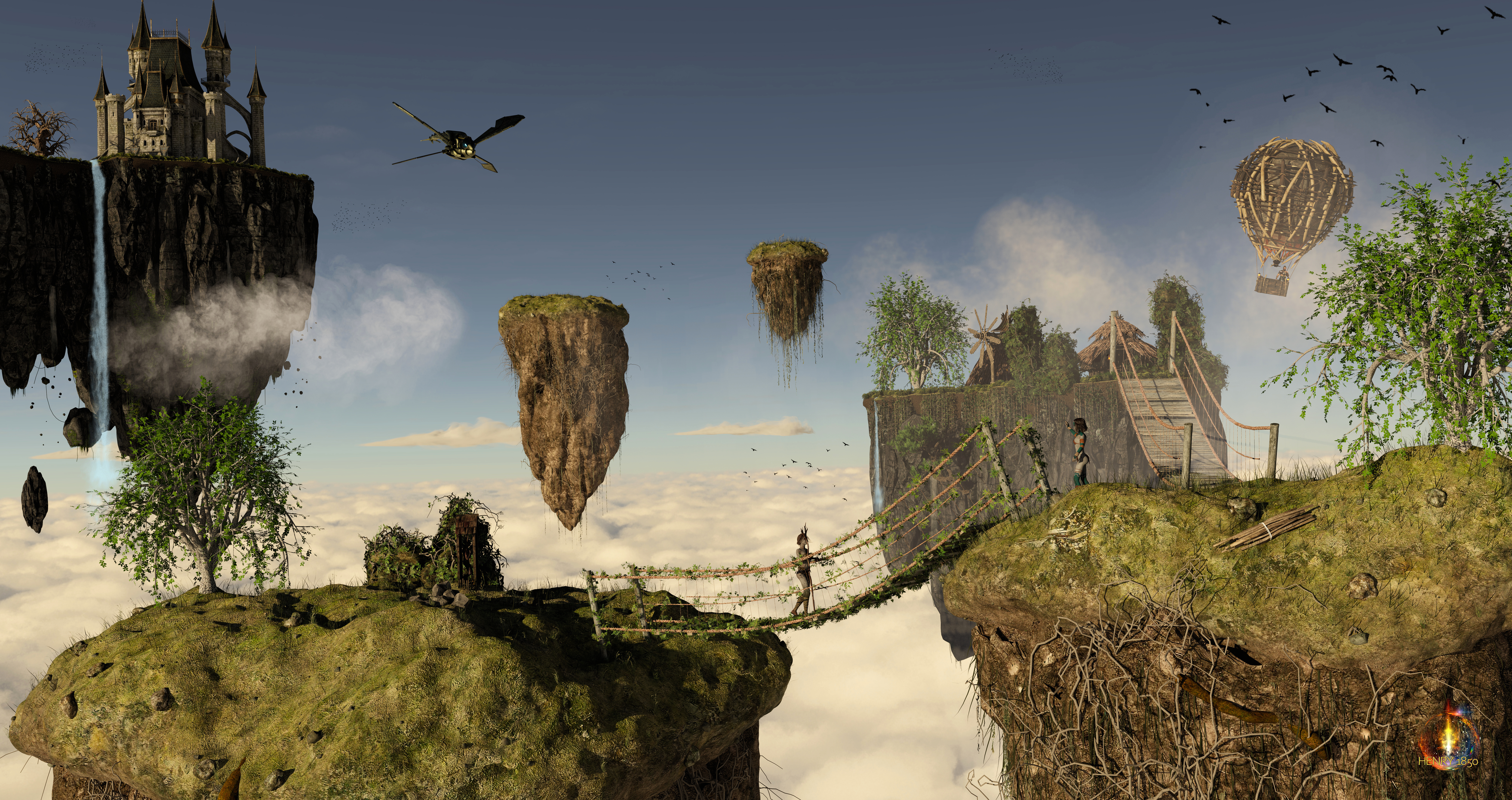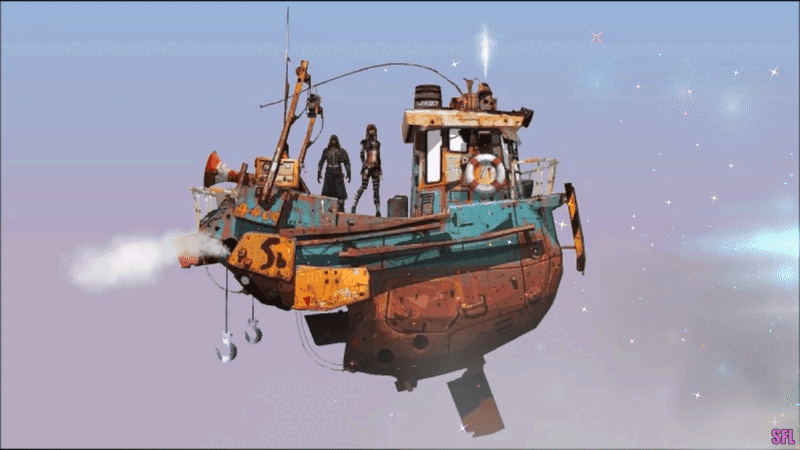 #boat #burds #dragon #fish #fishingboat #flyingboat #flyingship #island #mountan #ship #sky #vines #flyingmountains