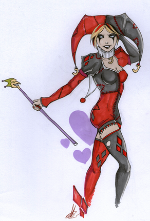 Arkham Harley - this is my third time drawing this outfit, and i forgot the facepaint and mask again. fuckin a. whatever, i still love the outfit, it's badass.
