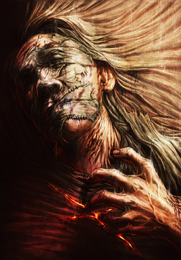 I love all the marks/sores/scars on the body, they're excellently done... The background is really beautiful as well... Excellent work