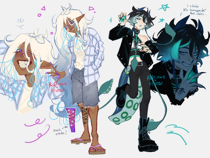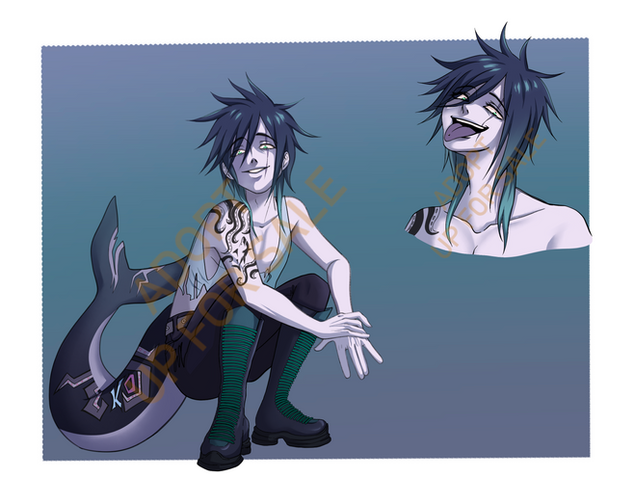 Was asked to update a design for OceanDork to make them into a Himbo Shark Dad and I had a really good time doing it ; v ;Original design by @/bajanbing