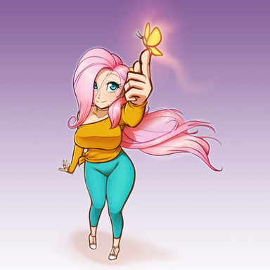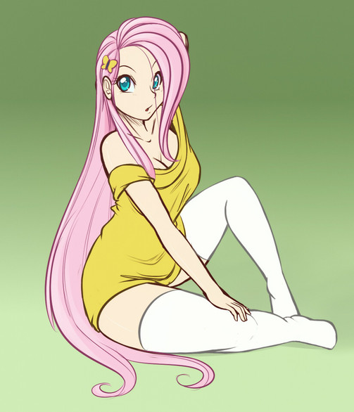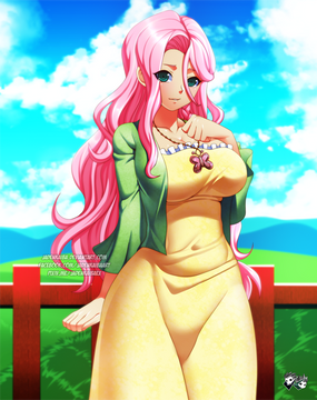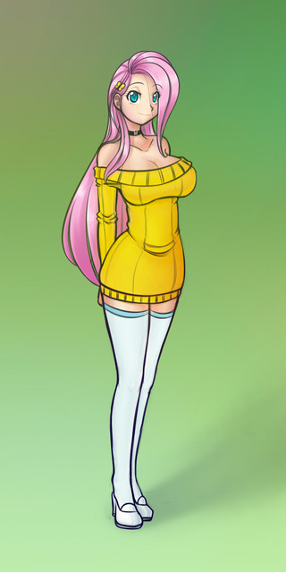#butterfly #cleavage #dress #fluttershy #hana #human #humanized #long_hair #mememe #mlp #necklace #sketch #my_little_pony #pink_hair #sweater_dress