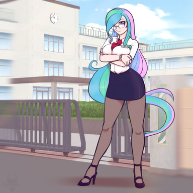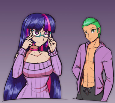 #cleavage #human #humanized #long_hair #mlp #my_little_pony #bare_shoulders #twilight_sparkle #hand_on_hip #massive_breasts #alternate_bodyshape