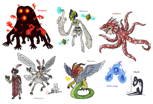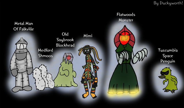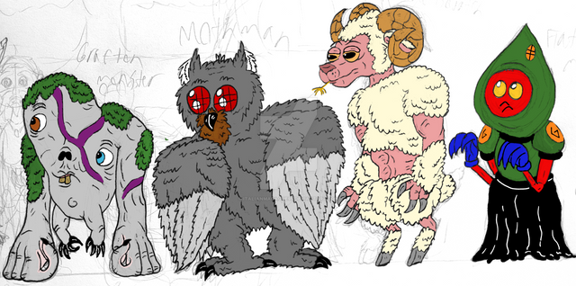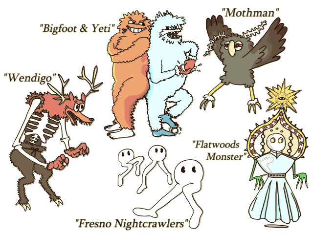 Some cute cryptids for your day.Featuring: The Jersey Devil, The Flatwoods Monster, Mothman, and Bigfoot!