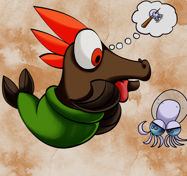 #angler #baby #creature #diaper #fantasy #fish #guppy #hunter #monster #redcap #scuzzy #sea #shell #vomit