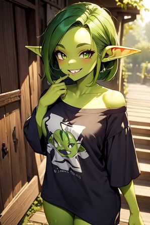 #characterdesign #bigbreasts #blondehairedgirl #originalcharacter #pointyears #shortgirl #shortstack #swimsuit #goblingirl #greenskinnedgirl #looking_at_viewer #ai_generated_art #stablediffusion #automatic1111 #scorpianpp #tiffitathegoblin