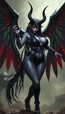 #originalcharacter #monster #dragongirl #demongirl #characterdesign #devilgirl #fantasycharacter #horror #trueform #wingedgirl #hauntingseason #hornedgirl #silverhairedgirl #yelloweyedgirl #white_scales #ai_generated_art #stablediffusion #automatic1111 #scorpianpp #nazzeratithecambion