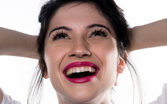 #beautiful #backlight #beanie #girl #glow #grimace #hair #happy #lips #lipstick #portrait #red #smile #sun #women #beaniehat