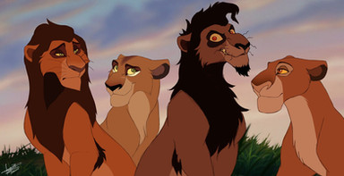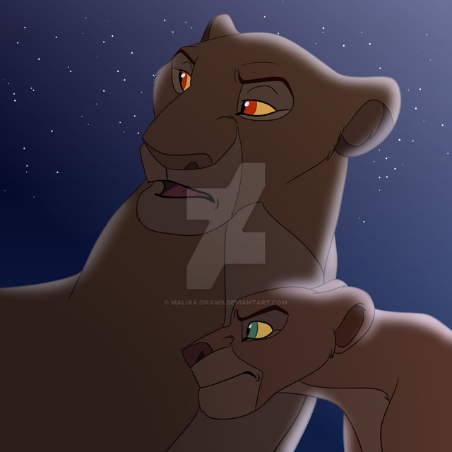 Oh, I thought they were the cubs of Scar and Zira, she looks a lot like Zira. Weirdly so. Is she her sister?