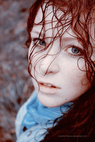 That's a really lovely piece love the clarity of the hair, this fair skin and those rather unusual colours. They seem to almost push each other.