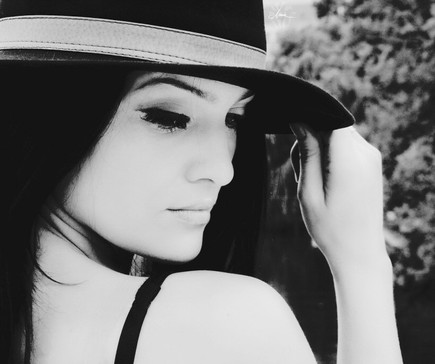 Strictly as a personal note, I would've have liked a stronger contrast and a darker vignette, I think it would have emphasized the contrast in her clothing.
