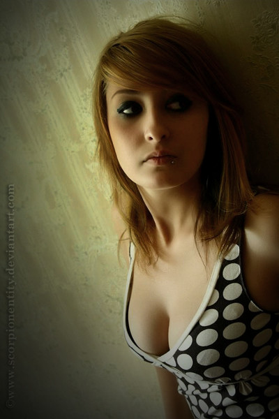 I love how the lighting is shot on her face and makes it the focus of the attention. She's a very beautiful model.