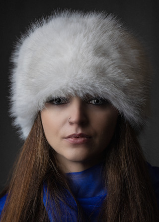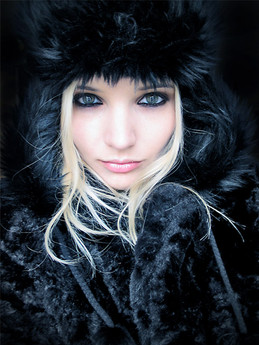 What a wonderful blue! You've also captured an amazing amount of fine detail. You must have a sharp lens and high resolution camera. Of course, the whole thing works because the model has such a captivating face.