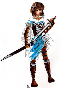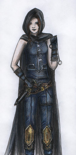 Another colored sketch of my Trinity Blood OC. Failed to mention in the last submission that her name is Elizabeth. This is her traveling outfit. The hood is by itself, which she uses if she must travel during the day to keep the UV radiation from the sun off of her face. Her main weapon is a pair of daggers (I forgot to color in the visible one. XD )I imagine that Abel probably wouldn't be as goofy in the rest of the anime series if they EVER chose to finish it. And I also imagine that it would probably harden his companions a bit.