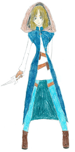I had no idea how to make auburn hair. I ended up starting with a base of sienna brown, layering a little metallic gold on top, then finishing with a scarlet to give it the orange cast. I added in the teal on her clothes and the gold on her face in order to avoid her becoming entirely monochromatic which I've noticed I have a tendency to do in pictures. Her color scheme is supposed to be pewter, black, and teal.