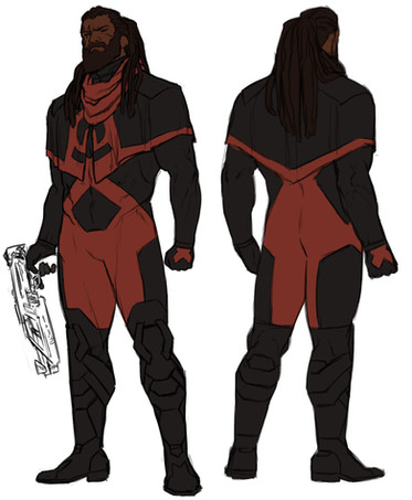 #bountyhunter #cloak #dude #entropy #male #oc #badass #barechested #blackarmor #blackmale #bodyarmor #chestplate #clothingdesign #concept #cyborg #dreadlocks #mechanicalarms #originalcharacter #ponytail #referencesheet #sunglasses #trenchcoat #mechanicallegs