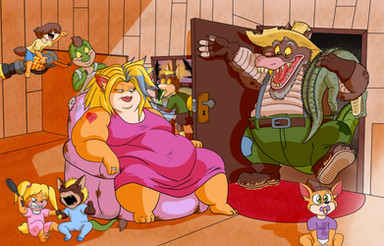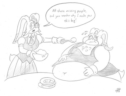 Continuing with the old, fat and cynical Rouge here she is just not caring and just letting herself go, she agreed to have some shlubby artist do some work for her but not having any real contact with society she then decided to just chat his ears off, she needed the company.Seeing how well the last Rouge pic did I decided to make another one where she put on more weight and is questioning modern day, the original idea would of been Scott telling her "C'mon Rouge, this what the people want apparently." While just shoving food down her throat and Busty in the background saying "What about me???" I liked this version more, more "tasteful" so to speak.